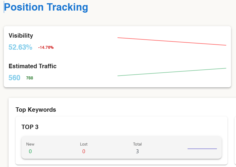 Sledujte, jak se mění umístění vašich klíčových slov ve vyhledávačích. Data se aktualizují každý den, takže nezmeškáte žádný pohyb. Vizualizujte si vývoj pozic v čase pomocí přehledných grafů. Snadno tak zjistíte, jestli vaše SEO aktivity fungují. Buďte informovaní, když klíčové slovo poskočí nahoru nebo klesne. Díky notifikacím máte situaci pod kontrolou. SeoLabs.cz sleduje vývoj SEO pozic vašich stránek a pomáhá vám reagovat na změny včas. Vše přehledně, automaticky a bez ručního sledování.
