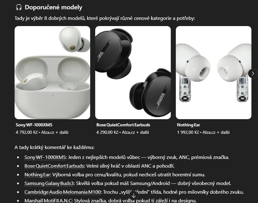 – kde uživatel chce porovnat, vybrat, rozhodnout se. Tam AI odpověď nestačí.