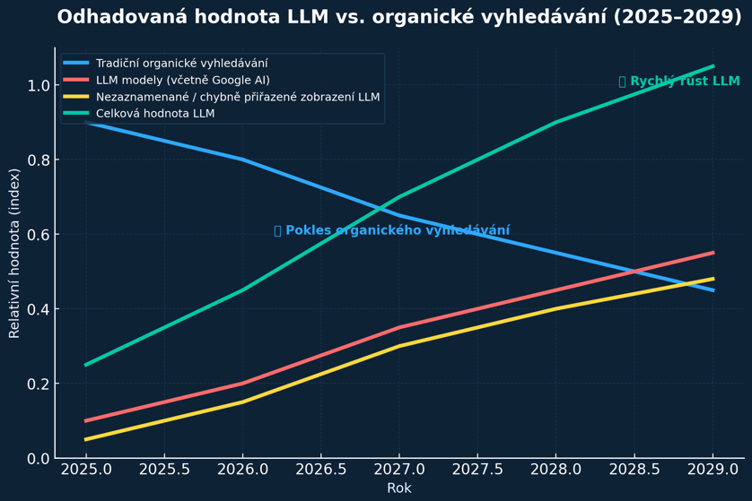 Zatímco tradiční SEO roky stálo na pevných základech klíčová slova, zpětné odkazy, optimalizace stránek dnes čelíme zásadnímu přerodu. Google zavádí AI odpovědi (Search Generative Experience, AI Overviews), ChatGPT umožňuje vyhledávání v přirozeném jazyce, a uživatelé mění své návyky rychleji, než kdy dřív.