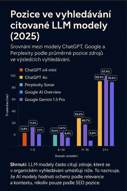 Perplexity a LLM společnosti Google také často citují stránky, které se v tradičních výsledcích vyhledávání umisťují níže.